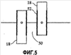 Как более четко показано на фиг.2, корпусная конструкция 12 образована из верхнего и нижнего слоев 30 и 32. В самом простом виде каждый из этих слоев 30, 32 образован из поляризованного пьезоэлектрического материала, такого как пьезоэлектрический преобразователь (ПЭП). Может оказаться удобным для каждого из этих двух слоев быть образованным из слоистого материала, включающего ПЭП на границе между слоями 30, 32 с соответствующей дополнительной подложкой, такой как подложка из оксида алюминия или стекла, каналы 18 для чернил образованы, например, распиливанием слоев 30 и 32. Как более четко показано на фиг.5 и 6, соседние каналы 18 смещены по отношению к центральной плоскости, образованной в этом примере границей между слоями 30 и 32. Таким образом, первая группа каналов (являющихся в одном примере каналами с нечетным числом) простирается на сравнительно короткое расстояние в слой 30 и на сравнительно большое расстояние в слой 32. Вторая группа каналов (являющихся в этом примере каналами с четным числом) простирается на сравнительно большое расстояние в слой 30 и на сравнительно короткое расстояние в слой 32. На фиг.2 показано сплошными линиями 18 местоположение относительно центральной плоскости каналов с четным числом, тогда как местоположение каналов с нечетным числом показано штриховыми линиями 18′.