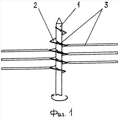 1. Изготавливают (штампуют) части винтовой поверхности 2 вместе с лопастями 3. Части соединяют между собой и закрепляют на валу 1. Вращение многолопастного винта передают на привод или наоборот.