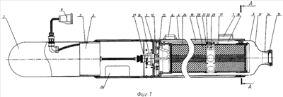 В зоне радиальных отверстий 22 размещены электровоспламенители 23 для поджига шашек. Электровоспламенители 23 посредством электрожгута 24 через электроразъем 25 электрически соединены с блоком запуска 3.