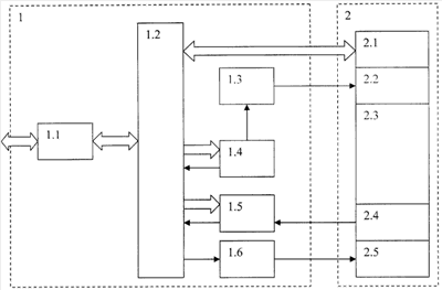 Приемопередатчик 1.1 может быть типа МАХ233, сигнальный процессор 1.2 может быть типа DSP56F801, усилитель 1.3 мощности можно выполнить на операционном усилителе общего применения, программируемый синтезатор 1.4 частоты может быть типа AD9834, усилитель 1.5 с программируемым коэффициентом усиления может быть типа MCP6S21, ключ 1.6 может быть выполнен на твердотельном реле типа ASO241, датчик 2.1 температуры может быть типа DS18B20, передающий 2.2 и приемный 2.4 преобразователи могут быть выполнены на пьезокерамических кольцах типа ЦТС – 19, резонатор 2.3 может быть выполнен в виде ультразвукового концентратора из элинварного сплава, к основанию которого механически прикреплены передающий 2.2 и приемный 2.4 преобразователи, а также датчик 2.1 температуры, в резонатор 2.3 встроен нагреватель 2.5, который может быть выполнен из нихромовой ленты с печатной обмоткой.