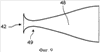 В предпочтительном варианте выполнения расходящийся канал 48 имеет горловину 49, как показано на фиг.9. Эта горловина 49 расположена между входным средством 42 для воздуха и расходящейся частью канала 48. Это соответствует части указанного канала 48, в которой сечение, через которое проходит воздух, является минимальным. Эта горловина 49 позволяет устанавливать пропускную способность воздушной массы в расходящемся канале 48 с помощью звукового барьера: как известно, скорость воздуха через горловину 49 является максимально равной скорости звука. Результатом этого является то, что когда самолет летит в крейсерском режиме, то указанная скорость воздуха в горловине 49 равна скорости звука. Размеры этой горловины 49 обычно рассчитываются так, чтобы ограничить пропускание воздуха в расходящемся канале 48 величиной, которая позволяет учитывать максимальную скорость воздуха в теплообменнике 40, определяемую в соответствии с потерями в нагрузке, которые желательно не превышать. Другое ограничение пропускания воздуха можно задавать так, чтобы ограничить аэродинамическое торможение, вызываемое указанной самолетной системой охлаждения жидкости, ниже максимального заданного значения.