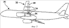 9. Система по п.1, отличающаяся тем, что указанное выходное средство (44) для воздуха выполнено по меньшей мере из одного сопла (44, 44а, 44b), расположенного по оси тяги самолета (30).