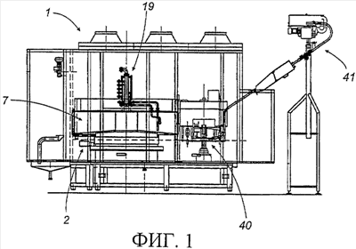 Карусель 2 расположена и выполнена с обеспечением поддерживания контейнеров (не показаны), а также служит для удержания бака 7, жестко соединенного с каруселью 2 при ее вращении вокруг оси А.