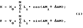 Расчет прямоугольных координат проводится вычислительным устройством 3 в соответствии с уравнениями:![]() где X, Y – координаты оператора; X0, Y0 – координаты начальной точки маршрута движения, вводятся с пульта управления; Li – измеренное значение длины шага оператора; Aмi – значение азимутального угла направления движения, измеряемое на каждом шаге; Aм – значение поправки направления, равное алгебраической разности магнитного склонения и сближения меридианов, вводится с пульта 4.