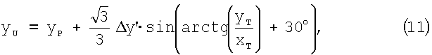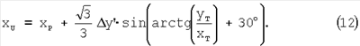Пусть (хR,уR) – координаты точки R (фиг.2). Эти координаты определяются аналогично координатам точки Р (формулы (5) и (6)).