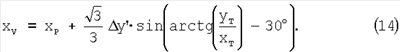 Координаты точки V находятся аналогично координатам точки U. Таким образом, согласно формулам (11) и (12):