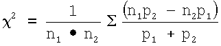 При попарном сравнении частот генотипов и аллелей в группах больных и здоровых лиц используется критерий 2 (P) для таблиц сопряженности 2×2 с поправкой Иэйтса на непрерывность, вычисляемый по формуле: