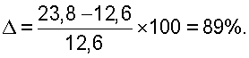 Полученные результаты в таблице 2 свидетельствуют о том, что разность между минимальным значением оценочного показателя эндогенной интоксикации для больных некротическим панкреатитом и максимальным значением оценочного показателя эндогенной интоксикации для здорового человека в 14 раз больше погрешности измерения по заявляемому способу.