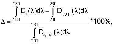 где Dх( ) – спектр оптической плотности раствора супернатанта, полученного из образца сыворотки крови;
