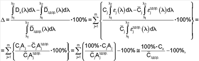 Таким образом, применение интегральных значений оптической плотности позволяет определить процент превышения содержания веществ низкой и средней молекулярной массы с точностью до незначительной разницы в хромофорном составе пула веществ низкой и средней молекулярной массы (если хромофорный состав меняется незначительно, то и
