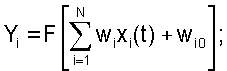 Входные сигналы Xi(t) (i=1, 2, 3…N) и выходной сигнал У персептрона (см. Осовский С. Нейронные сети для обработки информации, перевод с польского И.Д. Рудинского, М.: «Финансы и статистика», 2002, стр.21) связаны между собой зависимостью
