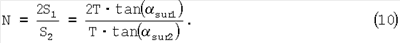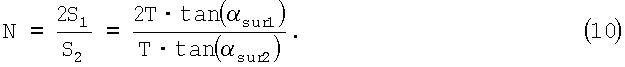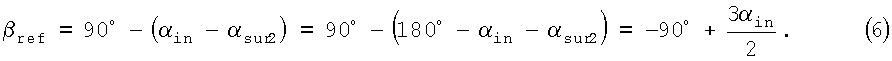 Ясно, что отражательная способность первой отражательной поверхности 16 (фиг.2) должна быть настолько высокой, насколько это возможно, для передачи как можно больше света от источника изображения в подложку. Принимая во внимание то, что центральная волна источника входит в подложку нормально, т.е. 0=180°, то угол sur1 между первой отражательной поверхностью и нормалью к плоскости подложки будет равен: