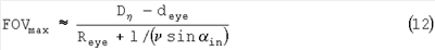 Как правило, диаметр глазного зрачка равен 2-6 мм. Для того чтобы приспособиться к движению или смещению (несоосности) дисплея, диаметр выходного зрачка приходится делать больше, чем необходимо. Минимальное расстояние между оптическими осями глаза берется равным 8-10 мм, а размер головы, l, обычно находится между 40 и 80 мм. Следовательно, даже для маленького угла обзора FOV=8° толщина подложки должна быть примерно 12 мм.