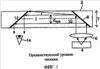 На фиг.1 изображено удобное оптическое преломляющее устройство, в котором подложка 2 освещается источником изображения 4. Дисплей коллимируется с помощью коллимирующей линзы 6. Свет, исходящий из источника 4, передается в подложку 2 с помощью первой отражательной поверхности 8 таким образом, что главный луч 10 становится параллельным плоскости подложки. Вторая отражательная поверхность 12 выводит свет из подложки и передает его в глаз наблюдателя 14. Несмотря на компактность этой схемы, она страдает серьезными недостатками; в частности, поле обзора (FOV) здесь получается очень ограниченным. Как видно из чертежа, максимальный внеосевой угол внутри подложки составляет: