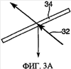 Теперь, когда отражательная поверхность имеет свойство отражать при ref и не отражать при , необходимые условия могут быть получены. На фиг.3А и 3В показано желаемое отражение селективно отражающих поверхностей. Пока луч 32 (фиг.3А) с внеосевым углом ref25° частично отражается и выводится из подложки, луч 36 (фиг.3В), который падает под углом на отражательную поверхность (что эквивалентно ), проходит сквозь отражательную поверхность 34 без какого-либо значительного отражения.