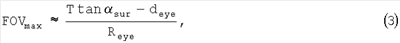 На практике tan sur не может быть больше 1; отсюда для тех же параметров, описанных выше для FOV=8°, толщина подложки будет примерно равна 7 мм, что является явным улучшением при прежних ограничениях. Тем не менее, при увеличении FOV толщина подложки быстро растет. Например, для FOV 15° и 30° толщина подложки будет 18 мм и 25 мм соответственно.