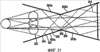 Конечно, очень важно обеспечить, чтобы каждый луч, отраженный от поверхности 88а, отразился бы от поверхности 88б, прежде чем он попадет в диафрагму 84. Чтобы это утвердить, достаточно проверить два пути: боковой луч противоположной поверхности 92, попадающий на поверхность 88а в точке 94, должен попасть на поверхность 88б правее его пересечения с поверхностью 90а, дополнительно боковой луч 96, попадающий на поверхность 88а рядом с пересечением 98 с поверхностью 90б, должен проникнуть на поверхности 88б до своего пересечения с диафрагмой 84. Ввиду того, что оба боковых луча отвечают условиям, важно чтобы все лучи из поля зрения, падающие на поверхность 88а, попадали также и на поверхность 88б. Настоящий пример представляет значительно суженную входную диафрагму 84:40 мм для поля зрения 42°. Естественно это применяется в случаях, когда l чрезвычайно большое, можно применить каскад из двух или более пар отражающих поверхностей, чтобы добиться желаемого поля зрения при допустимой исходной апертуре.