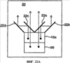 Очевидно, как уже было сказано ранее, в соответствии с фиг.21 поперечные размеры входной апертуры подложки составляют 40 мм по оси и 8,5 мм по оси . Фиг.22А и 22Б демонстрируют альтернативное исполнение того, что представлено на фиг.14-15. Данный подход включает в себя регулировку (настройку) между симметричной коллимирующей линзой 6 и асимметричной входной апертурой. Поперечные размеры входной апертуры принимаются как D и 4D вдоль двух осей соответственно. Линза 6 с апертурой в 2D коллимирует изображение на подошву (основу). Передняя часть коллимированного света связывается на подложку при помощи зеркала 16а. Две пары параллельных отражающих поверхностей 22а, 22b и 22с, 22d расщепляют пучок света наружу и затем отражают его в первоначальном направлении. Задняя часть коллимированного света проходит сквозь основу 20, а затем отраженная призмой 99 возвращается обратно в основу. Второе зеркало 16b собирает отраженный свет на основу 20. Очевидно, что поперечные размеры входной апертуры составляют D и 4D вдоль двух осей соответственно, как и требовалось.