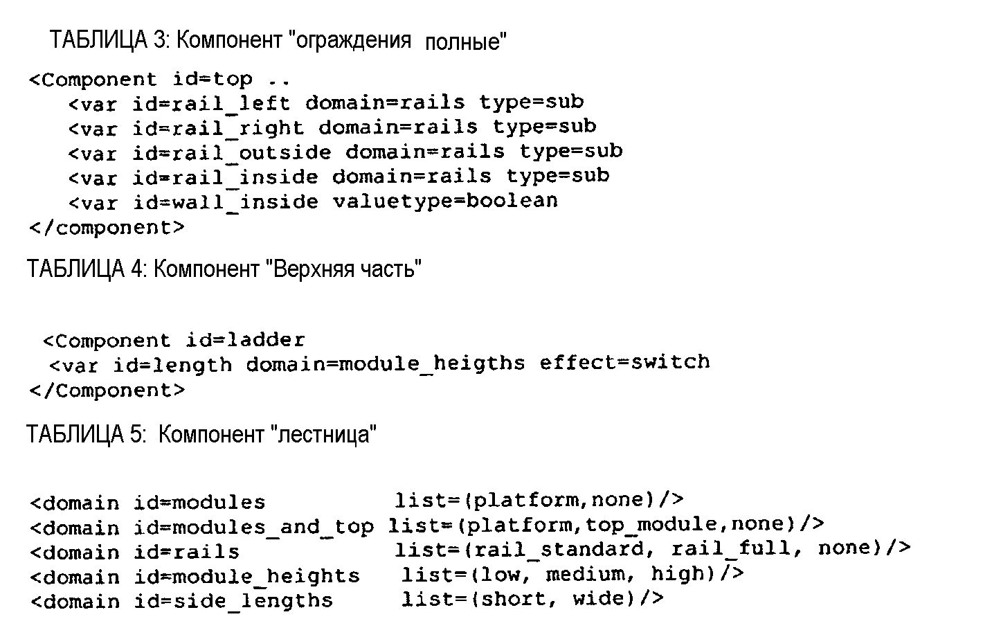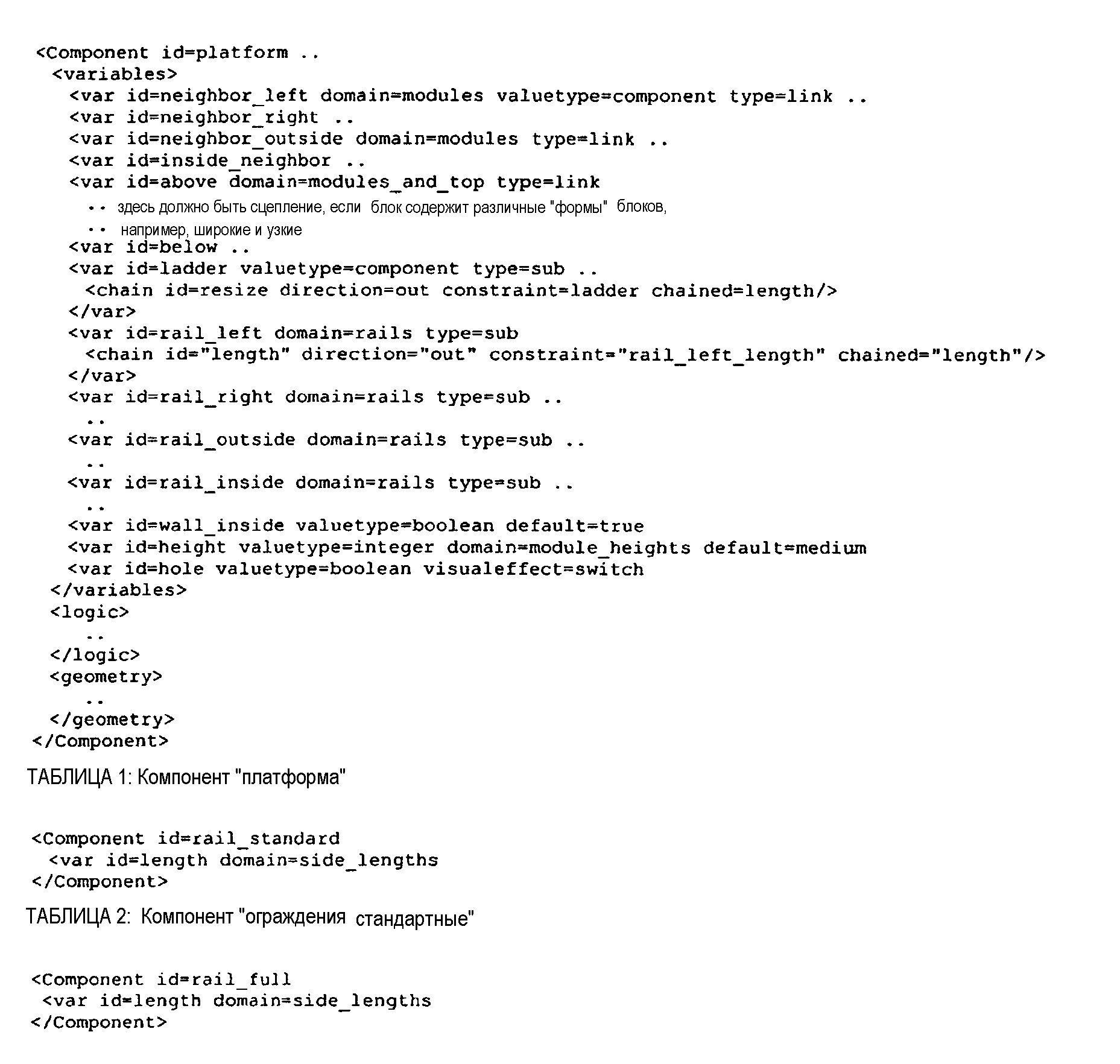 Второй набор данных может дополнительно содержать отдельную структуру данных или набор отдельных структур данных, которые определяют возможные или разрешенные комбинации компонентов и/или значений параметра, причем отдельную структуру данных или структуры включают во второй набор данных таким образом, что каждая отдельная структура данных является ассоциированной с конкретным компонентом, благодаря чему по меньшей мере одно из ограничений для конкретного компонента может отражать вышеуказанные возможные или разрешенные комбинации компонентов и/или значений параметра.