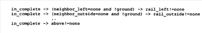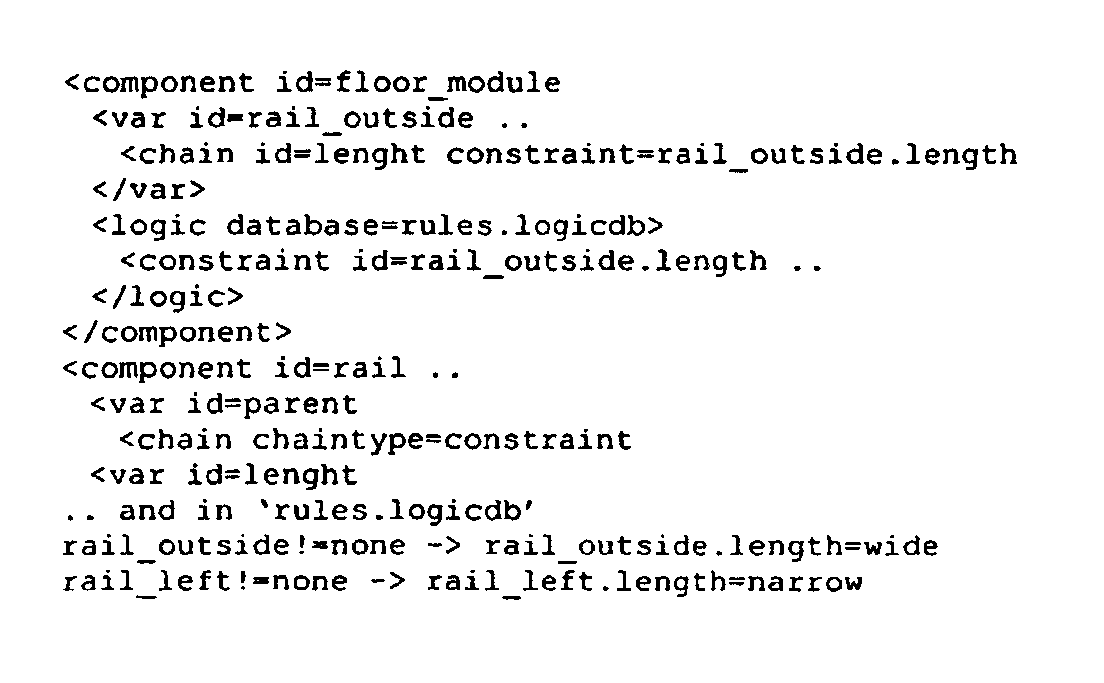 Поэтому существует несколько трудностей. Во-первых, объединенные полные логические правила для компонуемого изделия не очень хорошо соотносятся с классическим описанием модели изделия. Во-вторых, взаимосвязи в компонуемых изделиях не являются простыми для описания в терминах логических ограничений.