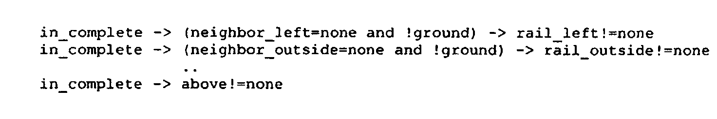 Этап 10: В заключение, чтобы гарантировать ограждения для всех необходимых мест, пользователь осуществляет завершение. Система настройки добавляет одиночные ограждения платформам platform3 посредством переменной состояния rail_left, platform4 посредством rail_right и rail_outside и top1 посредством rail_left и rail_outside, добавляет верхнюю часть (top2) к platform4.above, добавляет одиночные ограждения к top2 rail_right и rail_outside. Обратите внимание, что по умолчанию внутренней частью и платформы, и верхней части является «вдоль стены», так что ничего не добавляют.