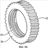 На фиг.4(b) иллюстрируется зубчатое колесо 36 в более крупном масштабе. На фиг.4(а) иллюстрируется зубчатое колесо 60, соответствующее разновидности этого варианта осуществления. В этом случае зубчатое колесо содержит внутреннюю зубчатую часть для вхождения в зацепление с винтовой канавкой 34, а внешняя периферия имеет ряд углублений 42а для приема рычага (не показан). Этот рычаг может использоваться для вращения зубчатого колеса 60. В этом случае не требуется ни зубчатого вала, например зубчатого вала 38, ни зубчатой поверхности 42.