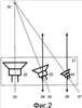 Вариант многополосной акустической системы состоит из подставки 21, на которой располагают акустически оформленные полосные блоки 22, 23, 24, имеющие свои акустические оси 25, 26, 27, которые сводят в центр восстанавливаемой звуковой картины 30 вращением в плоскости подставки 21 корпусов блоков 23 и 24, а выравнивание фаз происходит путем перемещения корпусов блоков 23 и 24 по поверхности подставки вдоль осей 28 и 29 параллельно оси 25.