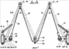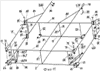 На фиг.11 в аксонометрическом изображении в виде стержней представлены сница, центральная секция, левая боковая секция и правая боковая секция, приведенные в транспортное положение.