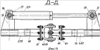 На фиг.14 – сечение Д-Д на фиг.12, размещение штока и основания силового гидроцилиндра механизма подъема сницы, центральной секции и боковых секций посредством шаровых шарниров и осей в кронштейнах силовых балок центральной и правой боковой секций, взаимно соединенных универсальным шарниром Гука, вид в плане.
