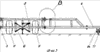Названная левая боковая секция 3, выполненная в зеркальном отражении правой боковой секции 4, образована силовой балкой 60, расположенной посредством вертикальных основной стойки 72 и дополнительной стойки 73 над силовой балкой 60, и поддерживающей балкой 71. Один конец поддерживающей балки 71 укосиной 83 связан со свободным концом силовой балки 60. Свободный конец силовой балки 60 снабжен кронштейном 84 в виде вилки для размещения опорного пневматического колеса 77 (см. фиг.11 и 1-6).