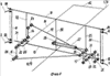 На фиг.8 в аксонометрическом изображении представлен механизм подъема сницы, центральной и боковых секций в виде шарнирного четырехзвенного антипараллелограммного механизма с демонтированными широкопрофильными шинами низкого давления на концах поворотных цапф.