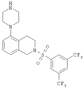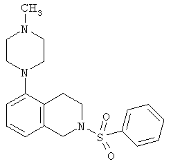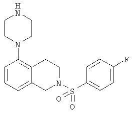 Настоящее изобретение относится к замещенным тетрагидроизохинолинам и изохинолинам, способам их применения в качестве терапевтических средств и способам их получения. Воздействия 5-гидрокситриптамина (5-НТ) в качестве главного модулирующего нейротрансмиттера в головном мозге опосредуются с помощью целого ряда групп рецепторов, обозначаемых как 5-НТ1, 5-НТ2, 5-НТ3, 5-НТ4, 5-НТ5, 5-НТ6 и 5-НТ7. На основании большого содержания в головном мозге 5-НТ6, рецептора мРНК, утверждается, что рецептор 5-НТ6 может играть роль в патологии и лечении нарушений центральной нервной системы (ЦНС). В частности, установлено, что селективные по отношению к 5-НТ2 и 5-НТ6 лиганды потенциально применимы при лечении некоторых нарушений ЦНС, таких как болезнь Паркинсона, болезнь Гентингтона, тревога, депрессия, маниакальная депрессия, психозы, эпилепсия, обсессивно-компульсивные нарушения, нарушения настроения, мигрень, болезнь Альцгеймера (для улучшения познавательной памяти), нарушения сна, нарушения питания, такие как анорексия и булимия, острые тревожные состояния с реакцией паники, синдром дефицита внимания с гиперактивностью (СНВГ), синдром нарушения внимания (СНВ), реакция на отмену наркотиков, таких как кокаин, этанол, никотин и бензодиазепины, шизофрения, а также заболевания, связанные с травмой позвоночника и/или травмой головы, такие как гидроцефалия. Также предполагается, что такие соединения будут применимы при лечении некоторых нарушений желудочно-кишечного тракта (ЖКТ), таких как функциональное заболевание кишечника. См., например, B.L.Roth et al., J.Pharmacol. Exp. Ther., 1994, 268, pages 1403-14120, D.R.Sibley et al., Mol. Pharmacol., 1993, 43, 320-327, A.J.Sleight et al., Neurotransmission, 1995, 11, 1-5, и A.J.Sleight et al., Serotonin ID Research Alert, 1997, 2(3), 115-8. Хотя раскрыто множество модуляторов 5-НТ6, сохраняется необходимость в соединениях, которые применимы для модуляции 5-НТ6. Одним объектом настоящего изобретения является (i) соединение формулы: