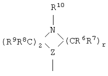 в которой: Z обозначает -N- или -СН-; r равно от 1 до 3; и R6, R7, R8, R9 и R10 независимо обозначают водород или алкил. Другими объектами настоящего изобретения являются: (ii) Соединение из раздела (i), в котором указанное соединение обладает формулой: