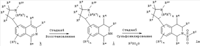 в которой n, R1, R3, R4, R6, R7, R8, R9, R10 и Ra являются такими, как определено в разделе (i), с сульфонилгалогенидом формулы R2-SO2-G, в которой R2 является таким, как определено в п.1 формулы изобретения, и G обозначает галоген. (xiii) Способ получения соединения формулы