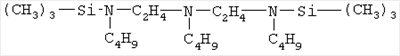 N,N”-бис-(триметилсилил)-N,N’,N”-триэтилдиэтилентриамин: молекулярная масса 332 у.е., плотность 0,8441 г/см3, температура кипения 109-111°С. Структурная формула N,N”-бис-(триметилсилил)-N,N’,N”-триэтилдиэтилен-триамина: 2-метил-2-винил-1,3-диаза-2-силациклопентан: молекулярная масса 247 у.е., плотность 0,8711 г/см3, температура кипения 85-87°С. Структурная формула 2-метил-2-винил-1,3-диаза-2-силациклопентана: