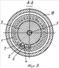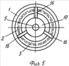 Вал ротора имеет механическую связь с внешним приводом (не показан) через вал 14 и коническую передачу 15. Фиг.5 демонстрирует расположение ротора 3 и статора 1 с торцевой поверхности. Статор 1 сочленен с подшипниковыми узлами 10 и 11 с помощью спиц 16. На фигурах стрелкой показано направление движения рабочего тела.