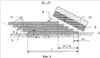 На фиг.6 изображен пакет, собранный из полос с симметричными скосами под углом , полученными фрезерованием. Пакет стянут по оси с распределенным усилием с образованием зазоров по краям пакета и без зазора по центру пакета. Метаемые пластины с зарядом ВВ и детонатором установлены с зазором над скосами.