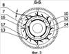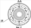 При аварийном увеличении жидкостной составляющей газового потока, характерном при запуске газовых систем, может произойти повышение уровня жидкой фазы, отводимой по наружной поверхности усеченного конуса 9, до высоты отбортовки отверстий 10, после чего жидкость будет транспортироваться газовым потоком по внутренней поверхности усеченного конуса 9 до щелей кольцевого лабиринта 18, с помощью которого она выводится на наружную поверхность цилиндрического пакета 6, где захватывается и отбрасывается к стенке корпуса 1 центробежной силой входящего в сепаратор газового потока и транспортируется к сливному патрубку 15.