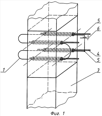 Как видно из примеров 1, 3, 4, заявляемая совокупность существенных признаков основного пункта заявляемого изобретения, а также дополнительных пунктов позволяет получить такие результаты, как ускорение процесса схватывания цементно-песчаного раствора в каналах, возможность проведения строительных работ в зимних условиях; возможность управления процессом схватывания цементно-песчаного раствора, повышение прочности песчано-цементного раствора в каналах, возможность автоматизации процесса схватывания цементно-песчаного раствора в каналах, а также достичь простоты изготовления устройства, обеспечить его надежность, возможность широкого использования независимо от количества инъецированных каналов и возможность подключения к любым источникам электрического тока.