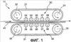 Третий шкив 32 является ведомым и соединен с двигателем (не показан), в то время как четвертый шкив 33 является холостым. Сжимающие ролики 34-38 могут свободно вращаться, их функция заключается в прижатии первой ленты к линейному компоненту 40.
