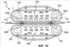 Все направляющие ролики 201-208 могут свободно вращаться, а их функция заключается в обеспечении симметричного расположения соответствующих растяжимых лент на соответствующих ведомых роликах 121, 123 и 131, 133. Когда растяжимые ленты находятся под действием силы сжатия на «внутреннем участке», то есть разность скоростей такова, что все растягивающее напряжение сброшено, и на ленты 121 и 131 теперь действует сила сжатия, они могут сползать соответственно со сжимающих роликов 124-128 и 134-138. Это сползание может привести к сходу лент с ведомых роликов. Дополнительная установка ведущих роликов 201-208 обеспечивает стабильное положение растяжимых лент относительно сжимающих роликов и ведущих роликов. Следует указать, что вариант выполнения изобретения, описанный выше со ссылками на фиг.4, может использоваться в сочетании с любым из других вариантов выполнения изобретения, описанных выше.