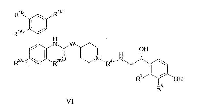 Другой частной группой соединений формулы I являются соединения формулы VI: где W, R1А, R1В, R1С, R2А, R2В, R4, R6 и R7 являются такими, как определено в таблице II, или их фармацевтически приемлемые соли, сольваты или стереоизомеры.
