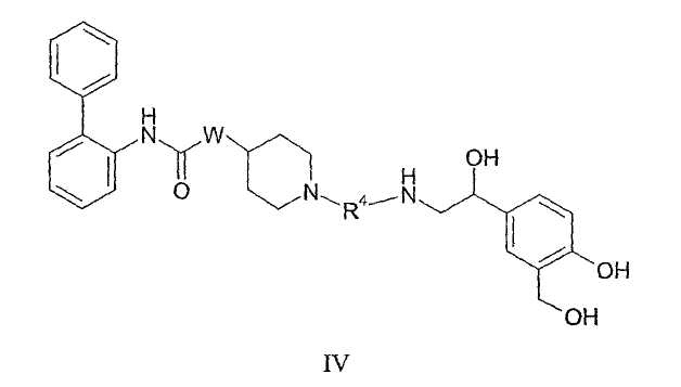 где t равно целому числу от 2 до 10 и u равно целому числу от 2 до 10, при условии, что t+u равно целому числу от 4 до 12; где v равно целому числу от 2 до 7 и w равно целому числу от 1 до 6, при условии, что v+w равно целому числу от 3 до 8, и где фен-1,4-иленовая группа необязательно замещена 1-4 заместителями, независимо выбранными из галогена, (1-4С)алкила, (1-4С)алкокси, -S(O)2-(1-4С)алкила, гидрокси, нитро и трифторметокси; и где х равно целому числу от 2 до 6, y равно целому числу от 1 до 5, и z равно целому числу от 1 до 5, при условии, что x+y+z равно целому числу от 4 до 8, и где фен-1,4-иленовая группа необязательно замещена 1-4 заместителями, независимо выбранными из галогена, (1-4С)алкила, (1-4С)алкокси, -S(О)2-(1-4С)алкила, гидрокси, нитро и трифторметокси. 13. Соединение по п.1, представленное формулой II: где W представляет собой О; R4 представляет собой двухвалентную группу формулы: где d, e, f, g, h и i, каждый независимо выбран из 0 и 1; R4a, R4b, R4c и R4d, каждый независимо выбран из (1-10С)алкилена, где каждая алкиленовая группа является незамещенной или замещена 1-5 заместителями, независимо выбранными из (1-4С)алкила, фтора и гидрокси; А1 и А2, каждый независимо выбран из (3-7С)циклоалкилена, (6-10)арилена, -О-(6-10С)арилена, (6-10С)арилен-О-, (2-9С)гетероарилена и (3-6С)гетероциклена, где каждый циклоалкилен является незамещенным или замещен 1-4 заместителями, независимо выбранными из (1-4С)алкила, и каждая ариленовая, гетероариленовая или гетероцикленовая группа является незамещенной или замещена 1-4 заместителями, независимо выбранными из галогена, (1-4С)алкила, (1-4С)алкокси, -S(O)2-(1-4С)алкила, гидрокси, нитро и трифторметокси; Q выбран из связи, -О-, -S(O)2-, -N(Qa)C(O)-, -C(O)N(Qb)-, -N(Qc)S(O)2-, -S(O)2N(Qd)-, -N(Qe)C(O)N(Qf)- и -N(Qk); Qa, Qb, Qc, Qd, Qe, Qf и Qk, каждый независимо выбран из водорода, (1-6С)алкила и А3, где алкильная группа является незамещенной или замещена 1-3 заместителями, независимо выбранными из фтора, гидрокси и (1-4С)алкокси; или вместе с атомом азота и группой R4b или R4c, к которым они присоединены, образуют 4-6-членную азациклоалкиленовую группу; А3 независимо выбран из (3-6С)циклоалкила, (6-10С)арила, (2-9С)гетероарила и (3-6С)гетероциклила, где каждый циклоалкил является незамещенным или замещен 1-4 заместителями, независимо выбранными из (1-4С)алкила, и каждая арильная, гетероарильная или гетероциклильная группа является незамещенной или замещена 1-4 заместителями, независимо выбранными из галогена, (1-4С)алкила и (1-4С)алкокси; при условии, что число смежных атомов в самой короткой цепи между двумя атомами азота, к которым присоединен R4, находится в интервале от 4 до 14; или его фармацевтически приемлемая соль, сольват или стереоизомер. 14. Соединение по п.1, представленное формулой III где W представляет собой О; R4 представляет собой двухвалентную группу формулы: где d, e, f, g, h и i, каждый независимо выбран из 0 и 1; R4a, R4b, R4c и R4d, каждый независимо выбран из (1-10С)алкилена, где каждая алкиленовая группа является незамещенной или замещена 1-5 заместителями, независимо выбранными из (1-4С)алкила, фтора и гидрокси; А1 и А2, каждый независимо выбран из (3-7С)циклоалкилена, (6-10)арилена, -О-(6-10С)арилена, (6-10С)арилен-О-, (2-9С)гетероарилена и (3-6С)гетероциклена, где каждый циклоалкилен является незамещенным или замещен 1-4 заместителями, независимо выбранными из (1-4С)алкила, и каждая ариленовая, гетероариленовая или гетероцикленовая группа является незамещенной или замещена 1-4 заместителями, не