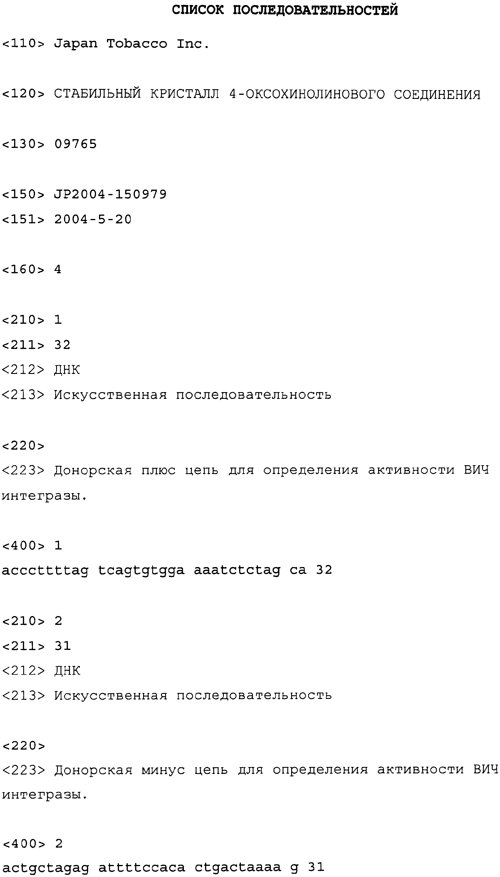 [8] ингибитор интегразы, включающий в свой состав какой-либо кристалл из вышеупомянутых с [1] по [4] или смешанный кристалл из вышеупомянутых [5] или [6] в качестве активного ингредиента;