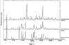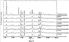 Фиг.2 представляет собой комплексные данные спектров рентгенодифракции, полученные после хранения образца в течение 3 дней при тестировании на стабильность кристаллической формы I. Для сравнения самая верхняя линия показывает спектр дифракции (начальные условия) для кристаллической формы II, и самая нижняя линия показывает спектр дифракции (начальные условия) для кристаллической формы I. Вторая сверху линия и последующие показывают спектры дифракции образцов после хранения в условиях #6 (60°С/75% относительная влажность, открытый контейнер, хранение в течение 3 недель), после хранения в условиях #4 (60°С, контейнер с пробкой, хранение в течение 3 недель), после хранения в условиях #5 (60°С, открытый контейнер, хранение в течение 3 недель), после хранения в условиях #3 (80°С, открытый контейнер, хранение в течение 3 недель) и после хранения в условиях #2 (80°С, контейнер с пробкой, хранение в течение 3 недель). На вертикальной оси показана интенсивность дифракции (cps: counts per second – подсчет за секунду, интервалы на шкале составляют 2500 cps) и на перпендикулярной оси показаны углы дифракции 2 (°).