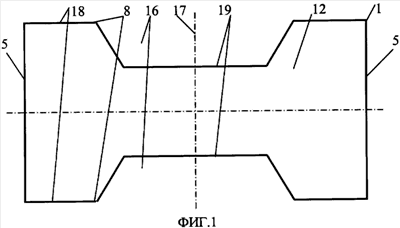 На фиг.1 показан вид спереди блока (вариант с гладкими торцами); на фиг.2 показан вариант с торцами, снабженными выступами и впадинами – вид сверху; на фиг.3 показан вариант с торцами, снабженными выступами и впадинами, вид сбоку – повернуто (внешняя пластина разрезана по вертикальной оси симметрии); на фиг.4 показан вид пластины; на фиг.5 показан вид формовочного вкладыша.