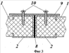 При наборе определенной высоты панелей, при которой сохраняется достаточное их сопротивление разрушению от давления заполняемого раствора, со стороны внутреннего пространства между сторонами опалубки к вертикальным стойкам 2 закрепляют полосы теплоизоляционного материала 9 для исключения образования мостиков холода посредством анкеров 10 в виде саморезов. Концы саморезов выступают во внутреннее пространство между сторонами опалубки и выполняют функцию анкеров после заполнения и отверждения раствора.