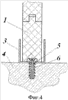 Согласно способу на фундамент 4 горизонтально и перпендикулярно между собой укладывают П-образные базовые элементы 3 внешней стороны монолитной стены (фиг.1). Аналогичным образом укладывают базовые элементы 3 внутренней стороны монолитной стены, при этом расстояние между внутренними поверхностями внешних и внутренних базовых элементов выставляют равным ширине возводимой монолитной стены. Базовые элементы 3 закрепляют на фундаменте посредством саморезов 6, ввинчиваемых в дюбели 6, установленные в отверстия фундамента 4 (фиг.4).