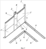 Вертикальные стойки 2 из П-образного или С-образного профиля установлены попарно открытыми пазами наружу, в направлении формируемой стены, а угловые стойки 2 сопряжены между собой по боковым сторонам. Вместо спаренных П-образных или С-образных профилей может быть установлен один Н-образный профиль.
