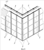 Затем в пазы стоек 2 и в паз базового элемента устанавливают панели 1 и далее операции повторяют в направлении обеих сторон возводимой стены по всему ее периметру. Панели устанавливают одна на другую пазом в гребень последовательной вертикальной подачей.
